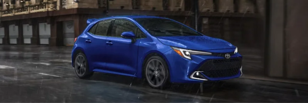 All-wheel drive is available on the Corolla Cross and comes standard on the Corolla Cross Hybrid and GR Corolla. The Corolla sedan, Corolla Hybrid, and Corolla Hatchback are front-wheel drive only.